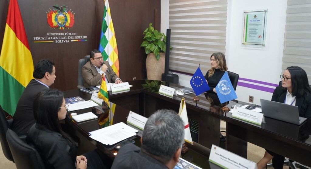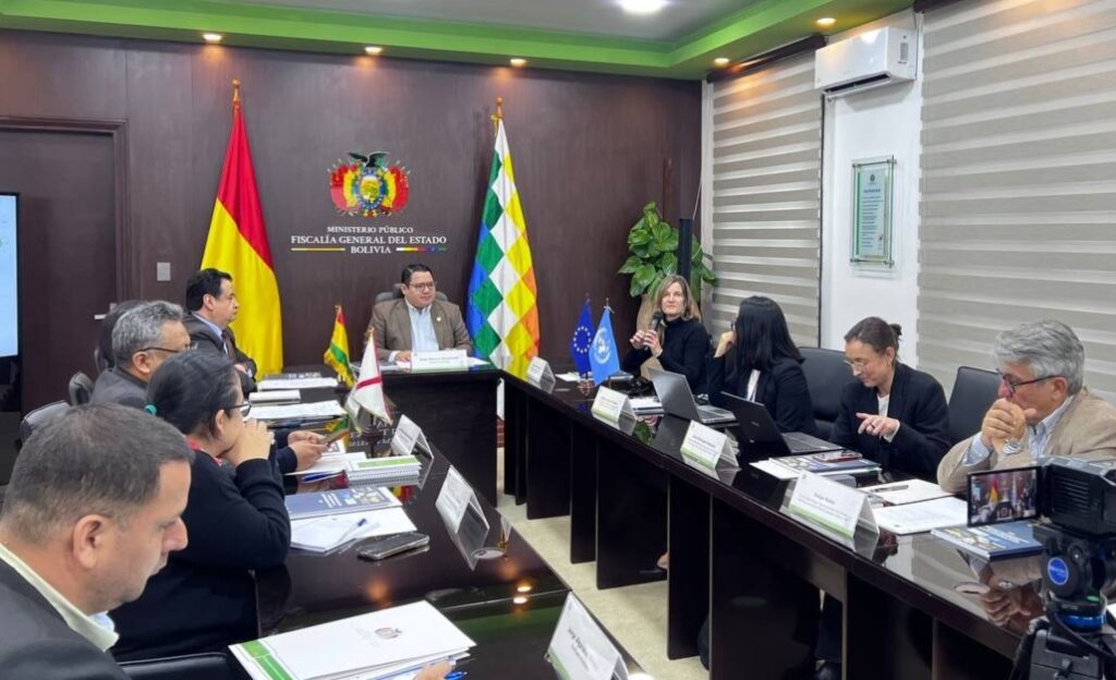 El Fiscal General del Estado, Roger Mariaca Montenegro, inauguró hoy el Diálogo Técnico: Conformación – Alcance de los Equipos Conjuntos de Investigación (ECI) y Propuesta de Acciones, donde participaron directores y técnicos especialistas de la Oficina de las Naciones Unidas contra la Droga y el Delito (UNODC) y la Fundación para la Internacionalización de las Administraciones Públicas (FIAP), con la finalidad de fortalecer la cooperación judicial internacional.